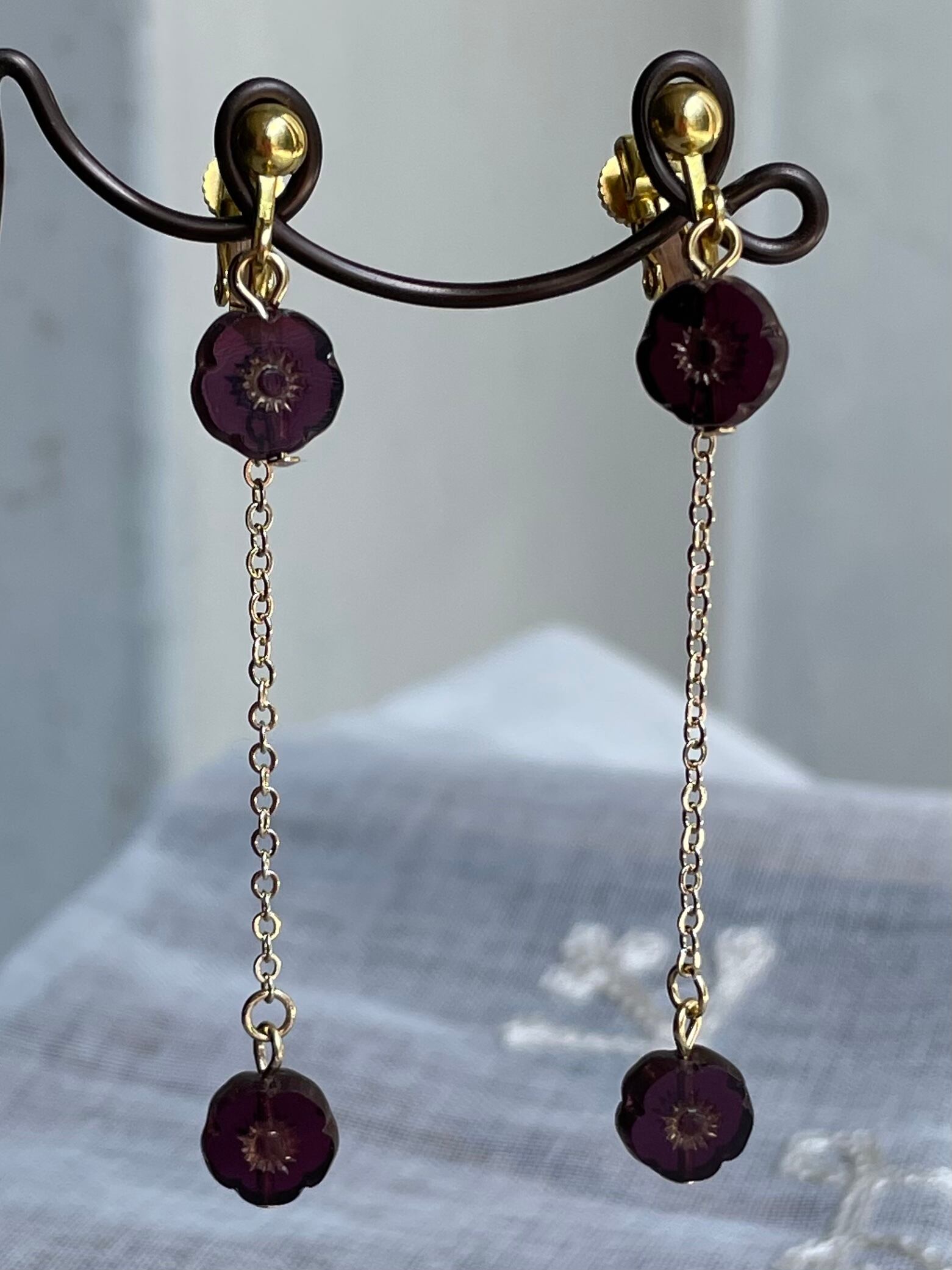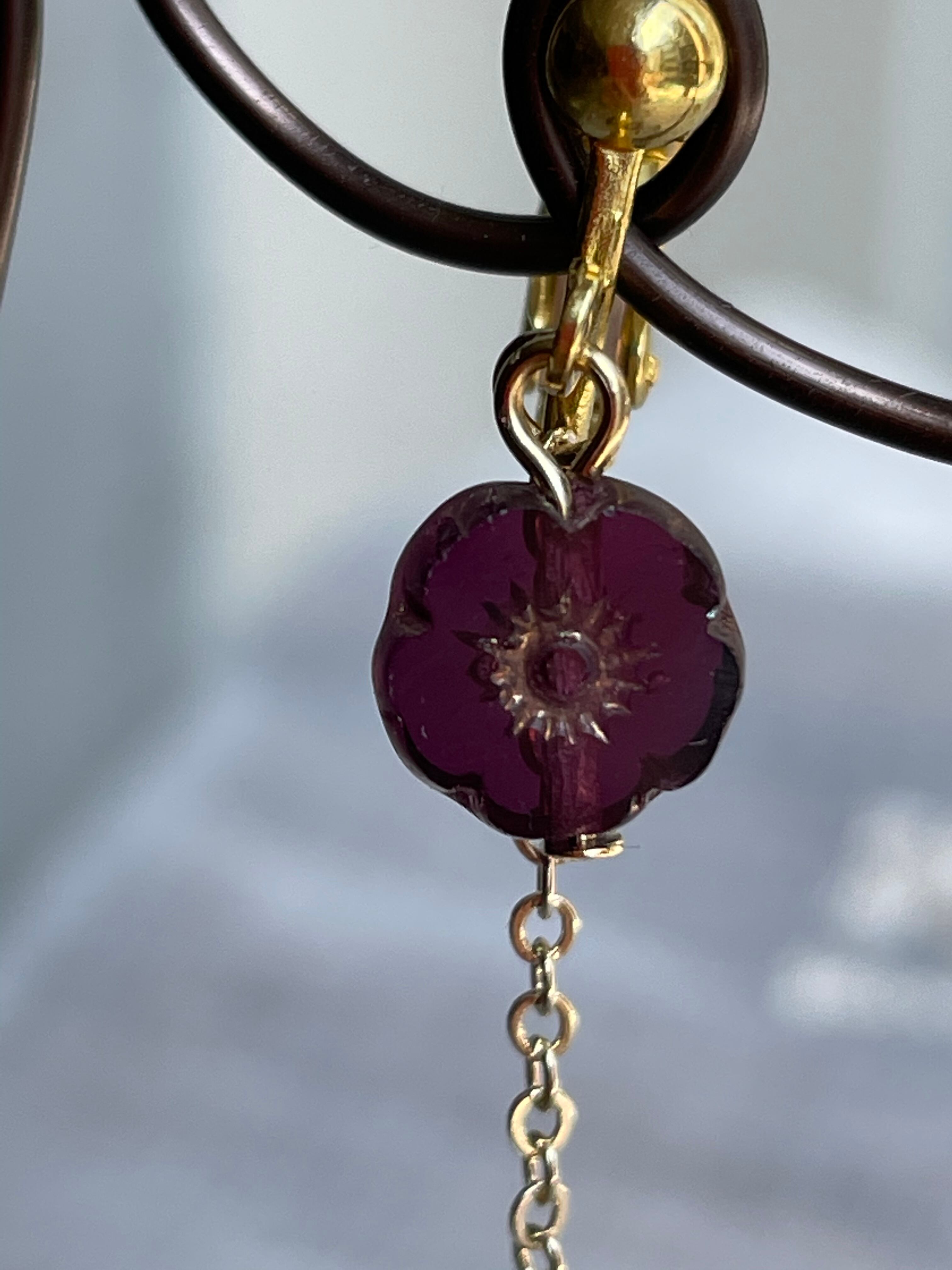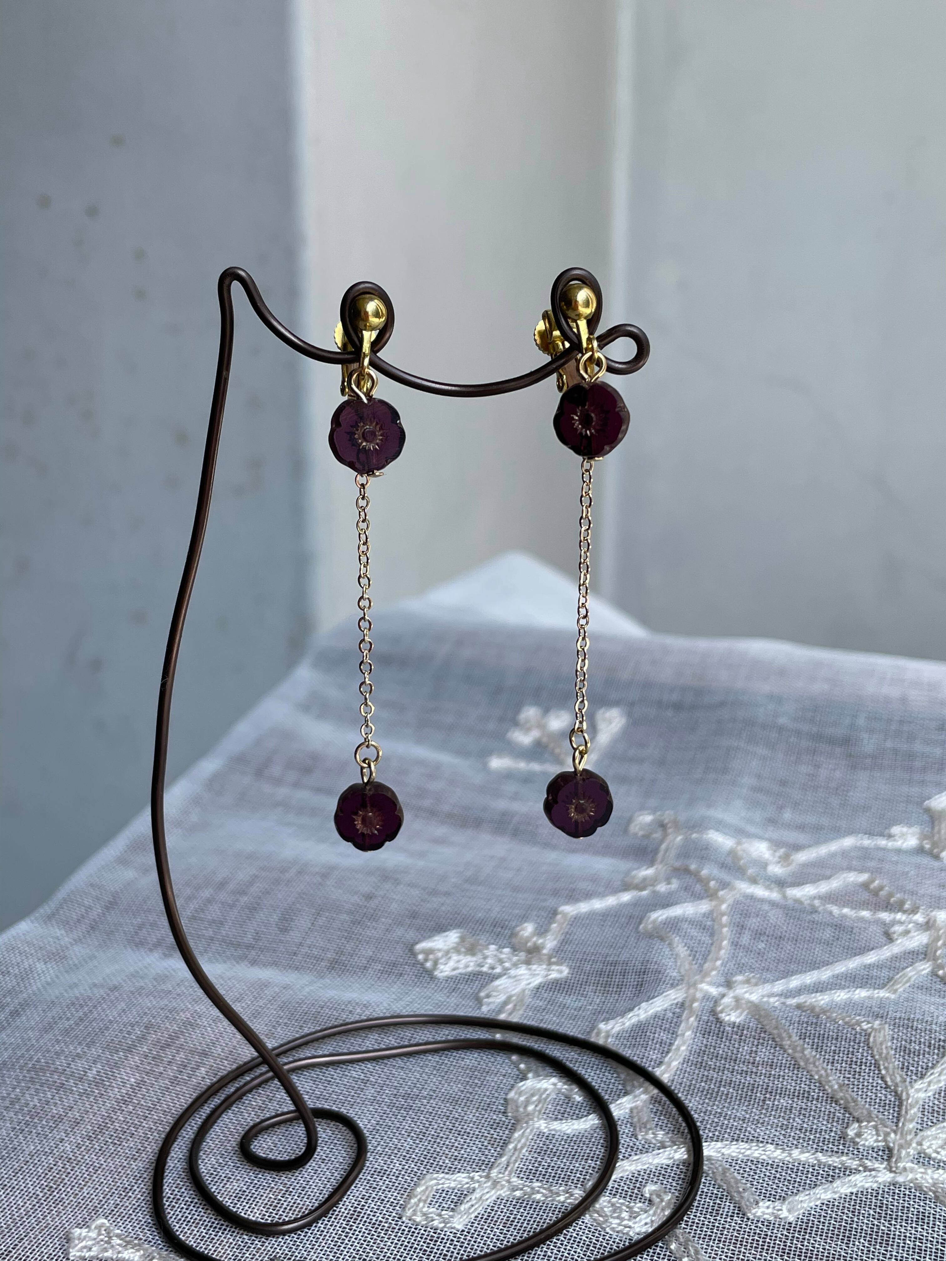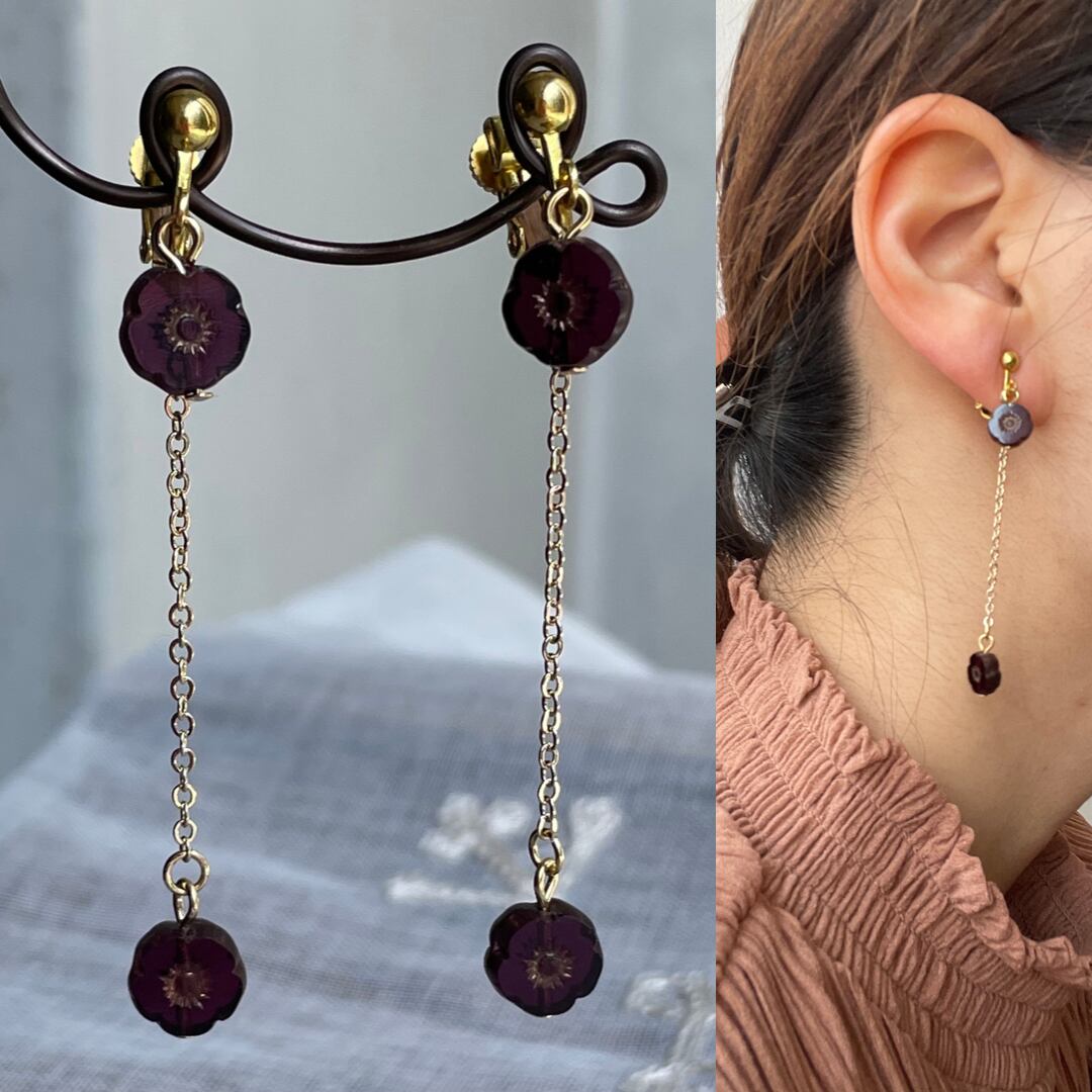 濃いクリアパープルのお花のチェコビーズを使用して大人の女性らしくシンプルに仕上げました。