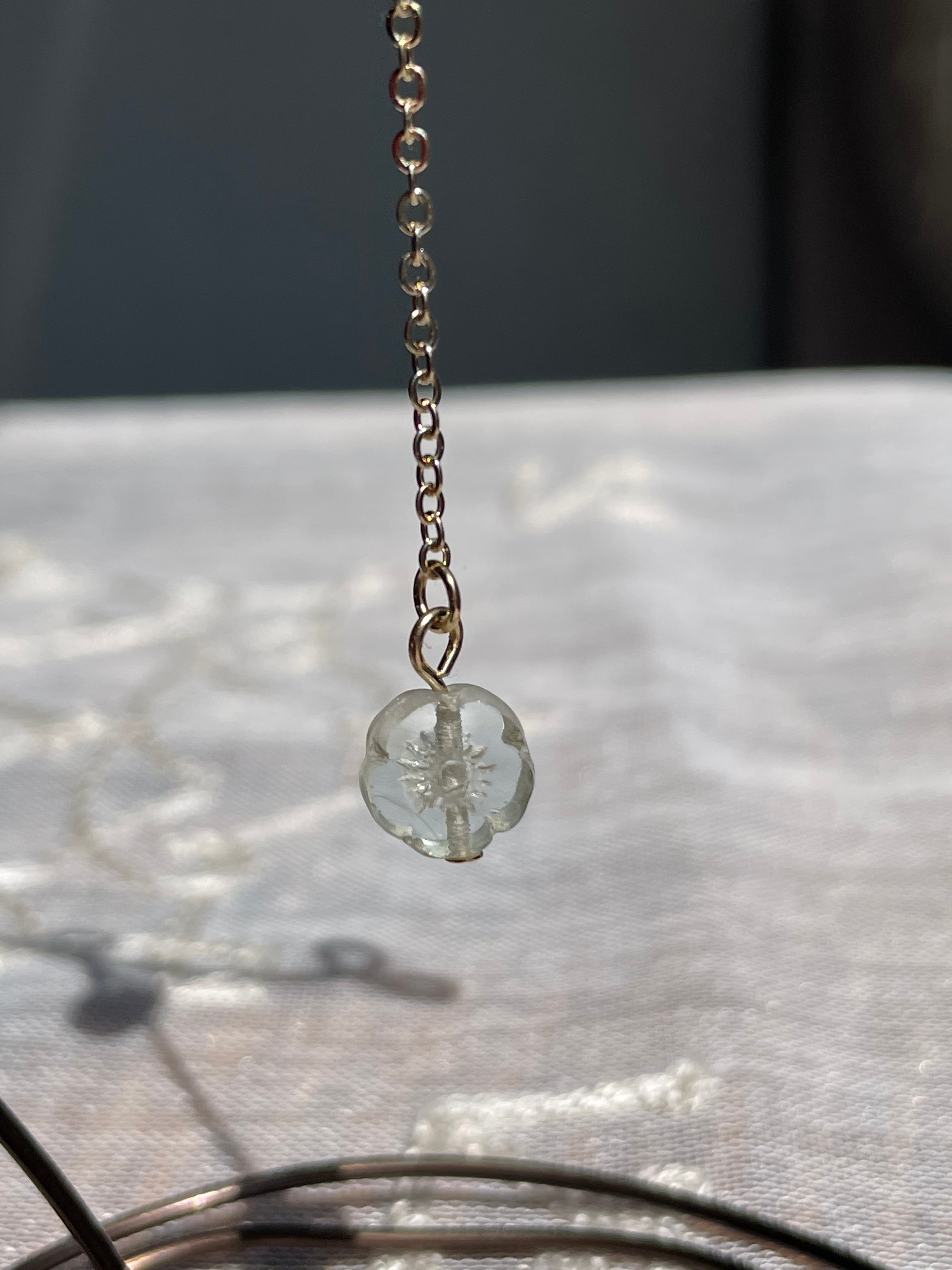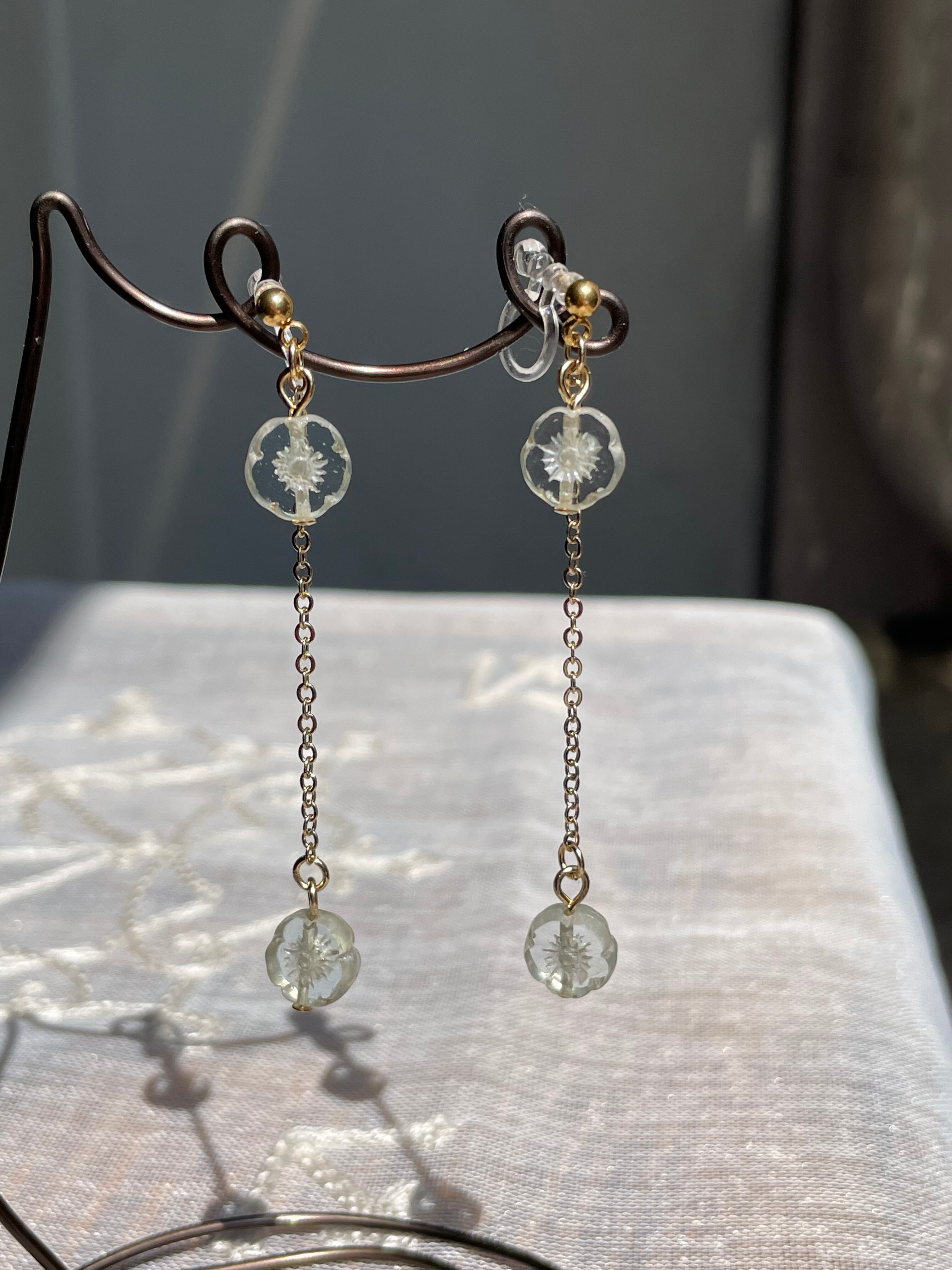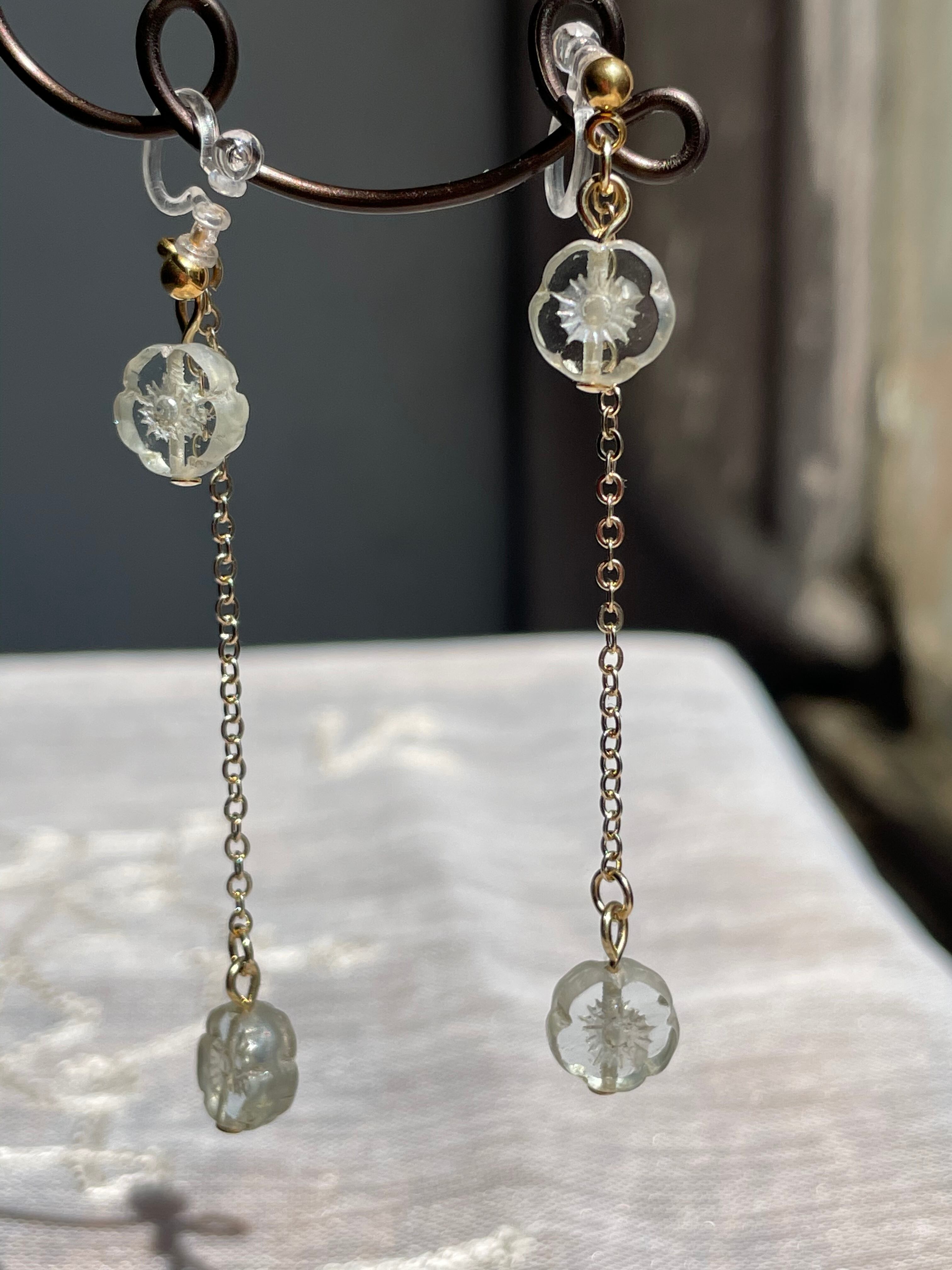 ほんのりグレーがかったクリアなお花のチェコビーズを使用して大人の女性らしくシンプルに仕上げました。
