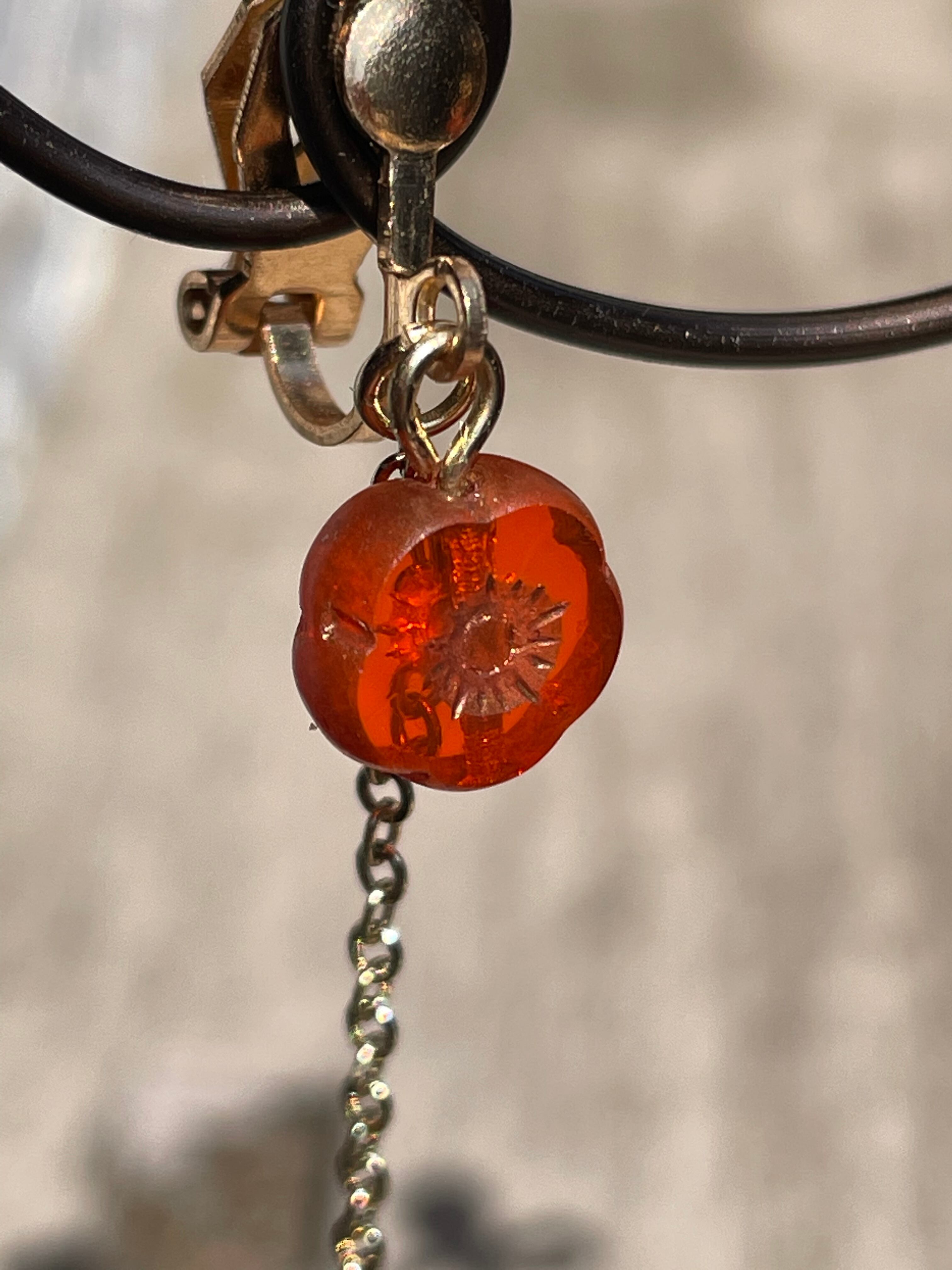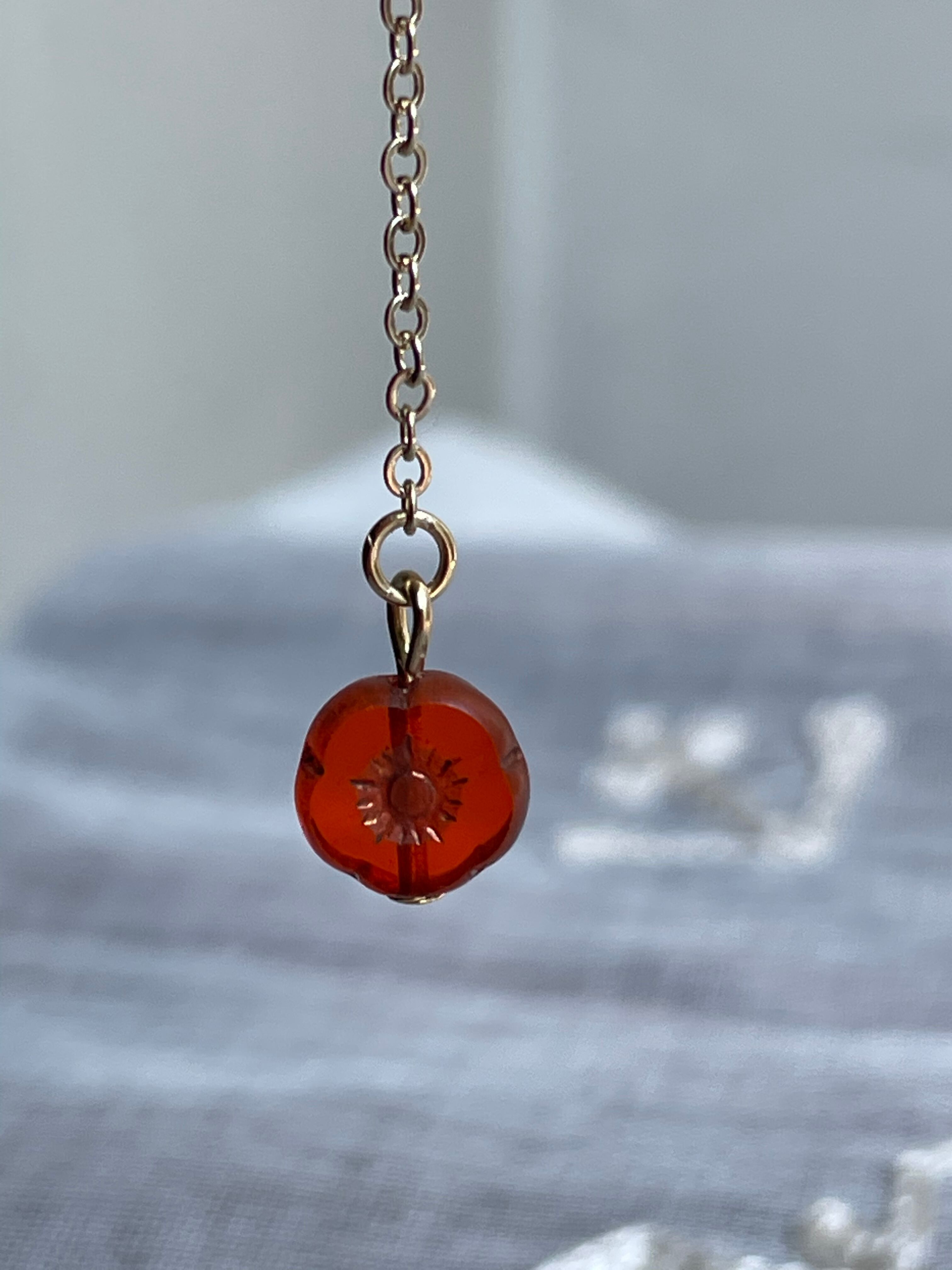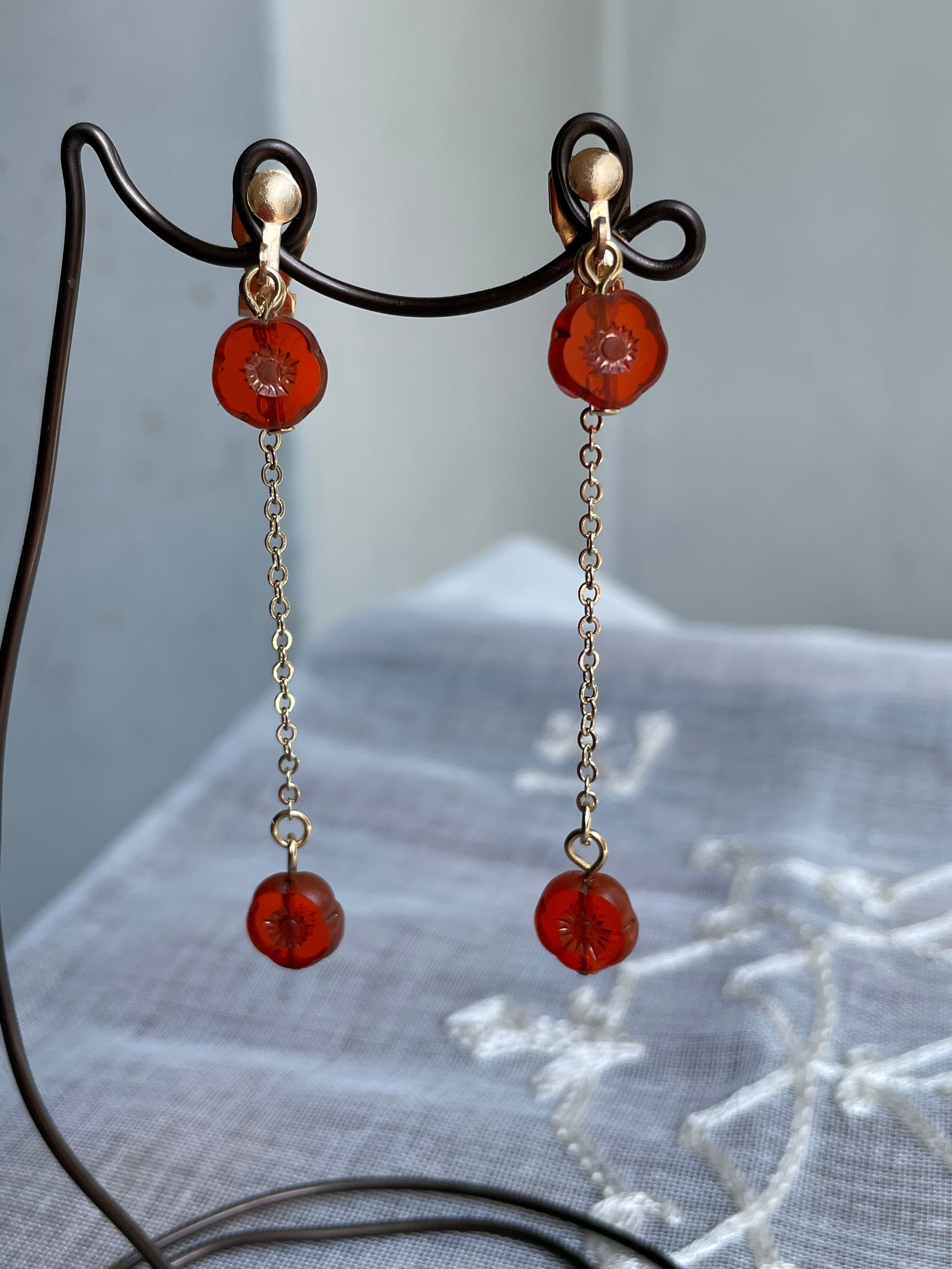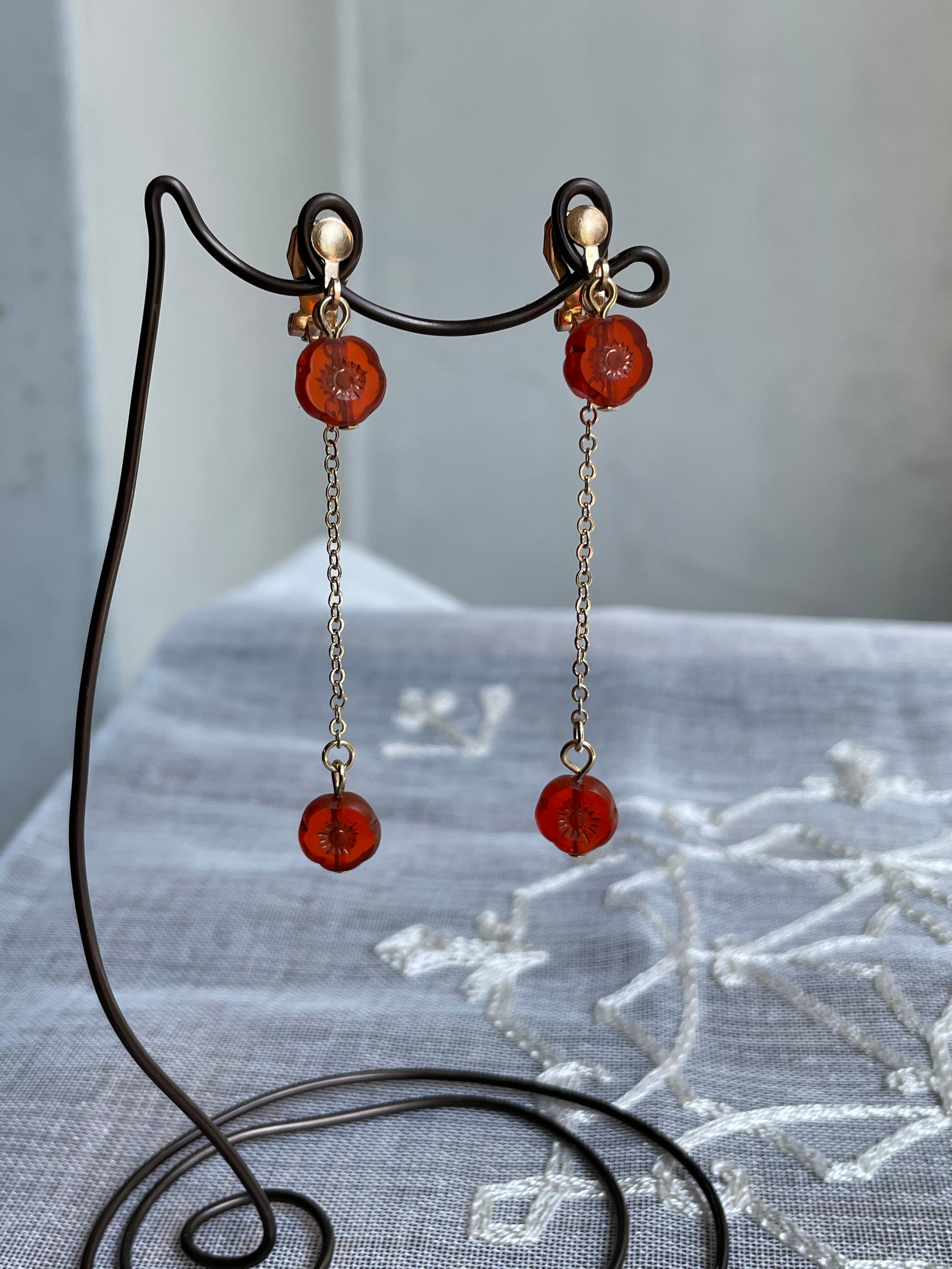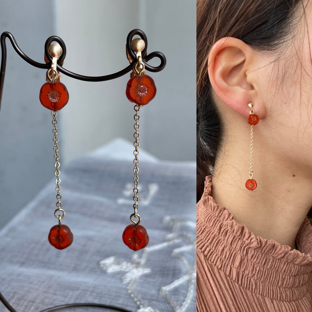 クリアレッドのお花のチェコビーズを使用してシンプルに仕上げました。